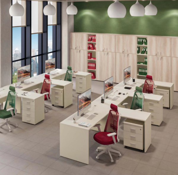 Espacios funcionales para carpetas, archivadores y accesorios de oficina, aportando orden y accesibilidad.