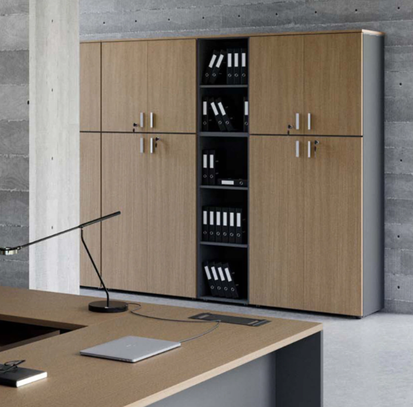 Módulos amplios con puertas y estantes internos, ideales para mantener documentos y materiales perfectamente organizados.