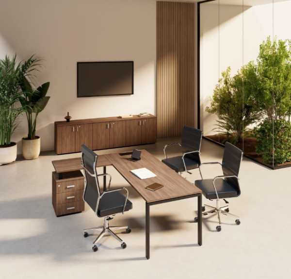 Diseños amplios y elegantes en madera y metal, pensados para transmitir autoridad y estilo en espacios ejecutivos.